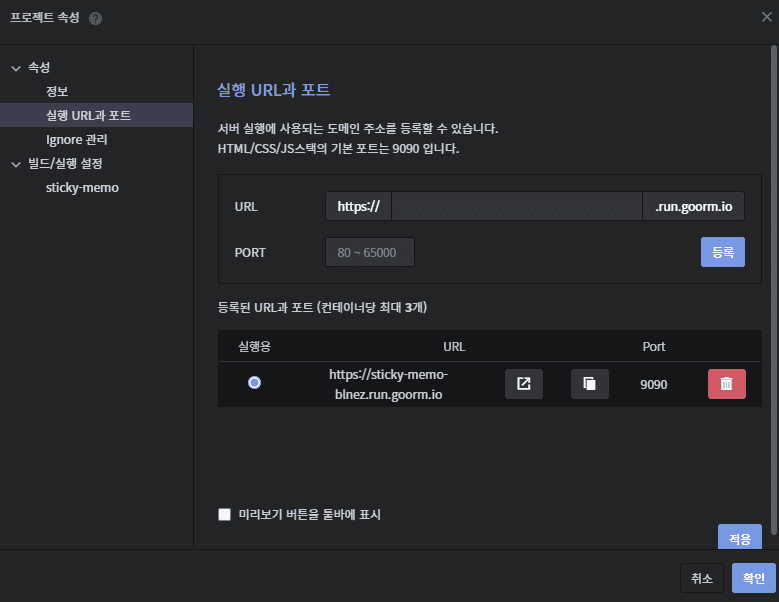 반드시 해당 포트와 연결된 URL을 설정 후, 해당 URL로 실행해야합니다.