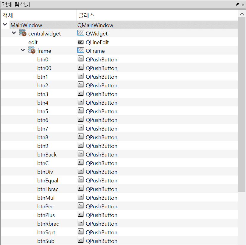 파이썬에서 작성한 코드와 QtDesigner를 이용하여 작성한 내용은 다음과 같습니다. 혹시 제 코드 중 어디가 잘못되었는지 알려주실 수 있나요?