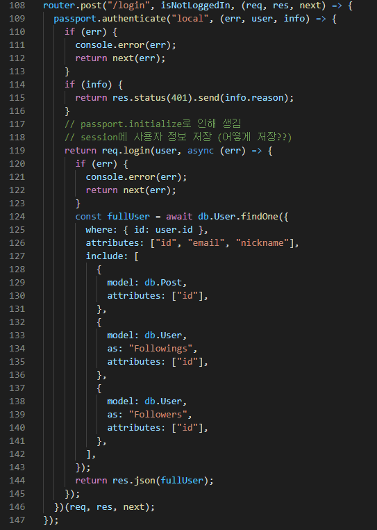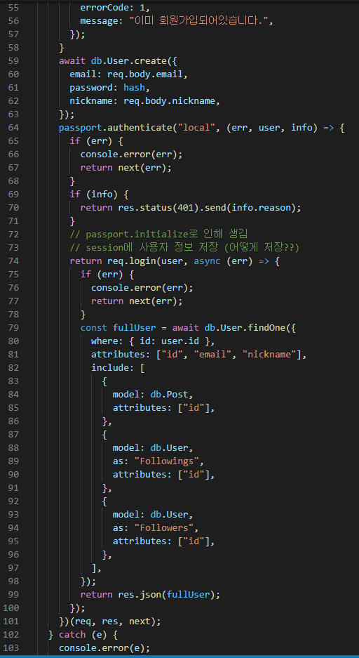회원가입하고나서 localStrategy를 통해 로그인이 성공하고, passport의 serializeUser이 실행된 것도 확인했습니다.