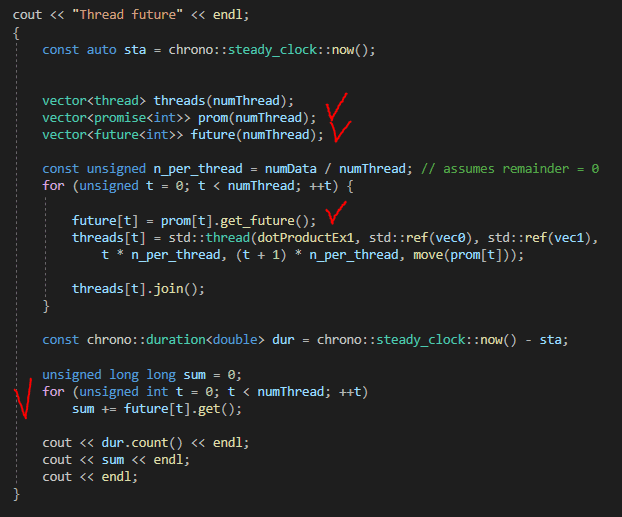 futures[t] = std::async(dotProductFuture, std::ref(v0), std::ref(v1),