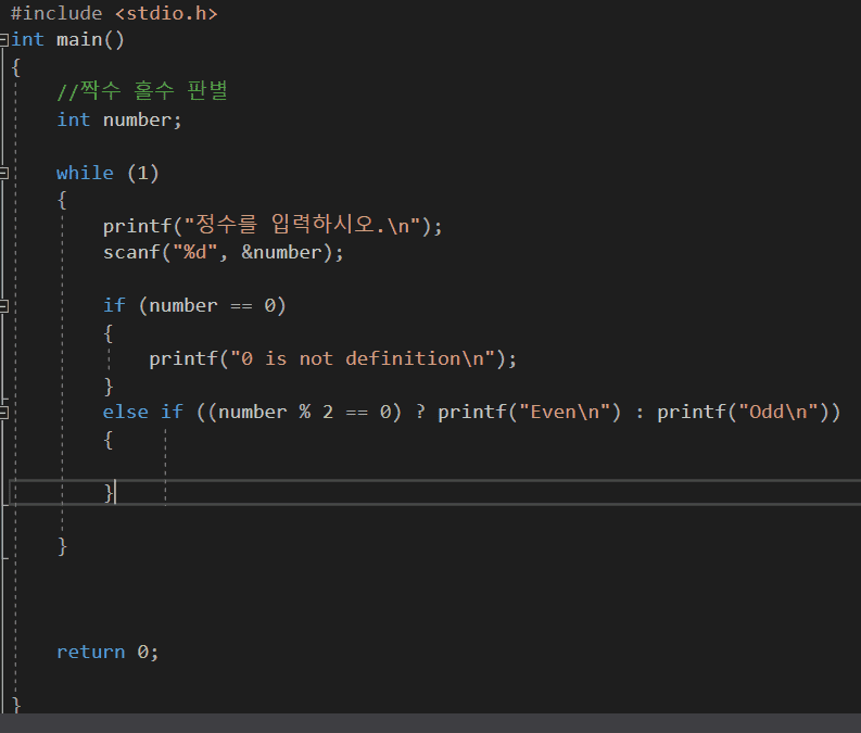 바로 while() 이나 if() 안의 조건문이 그런 예시 중 하나입니다. while(조건문) 은 세미콜론이 없다 하더라도 하나의 명령단위라는 것을 알 수 있습니다. if() 문도 마찬가지입니다.