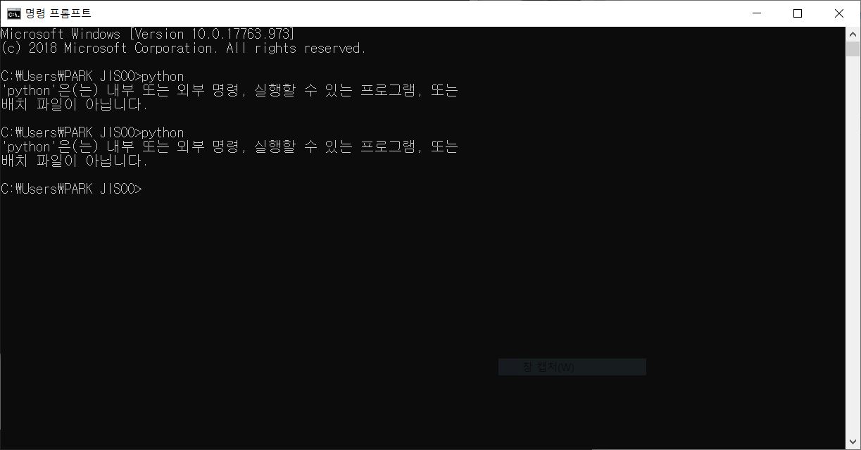 cmd에서 파이썬이 실행이 되지 않네요 ㅠ