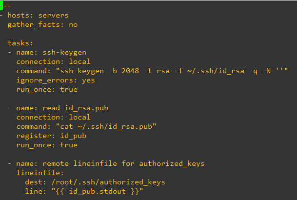 제가 의심이 되는 부분은 마지막 lineintfile dest에 /root/.ssh 경로를 설정해서 그런것 같습니다.