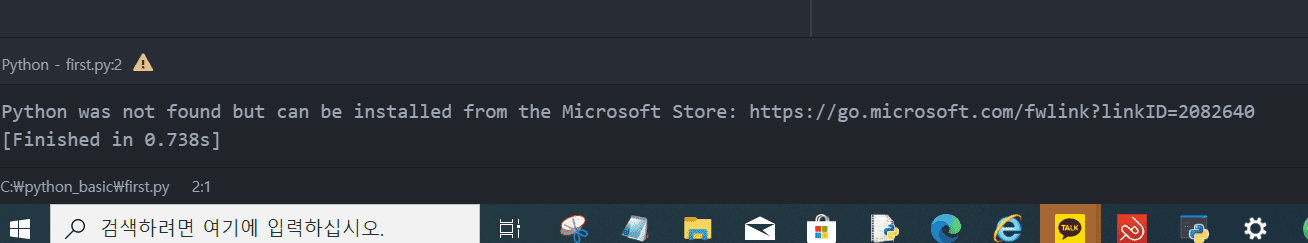 파이썬을 아톰이 찾지 못해서 나오는 콘솔 내용입니다.