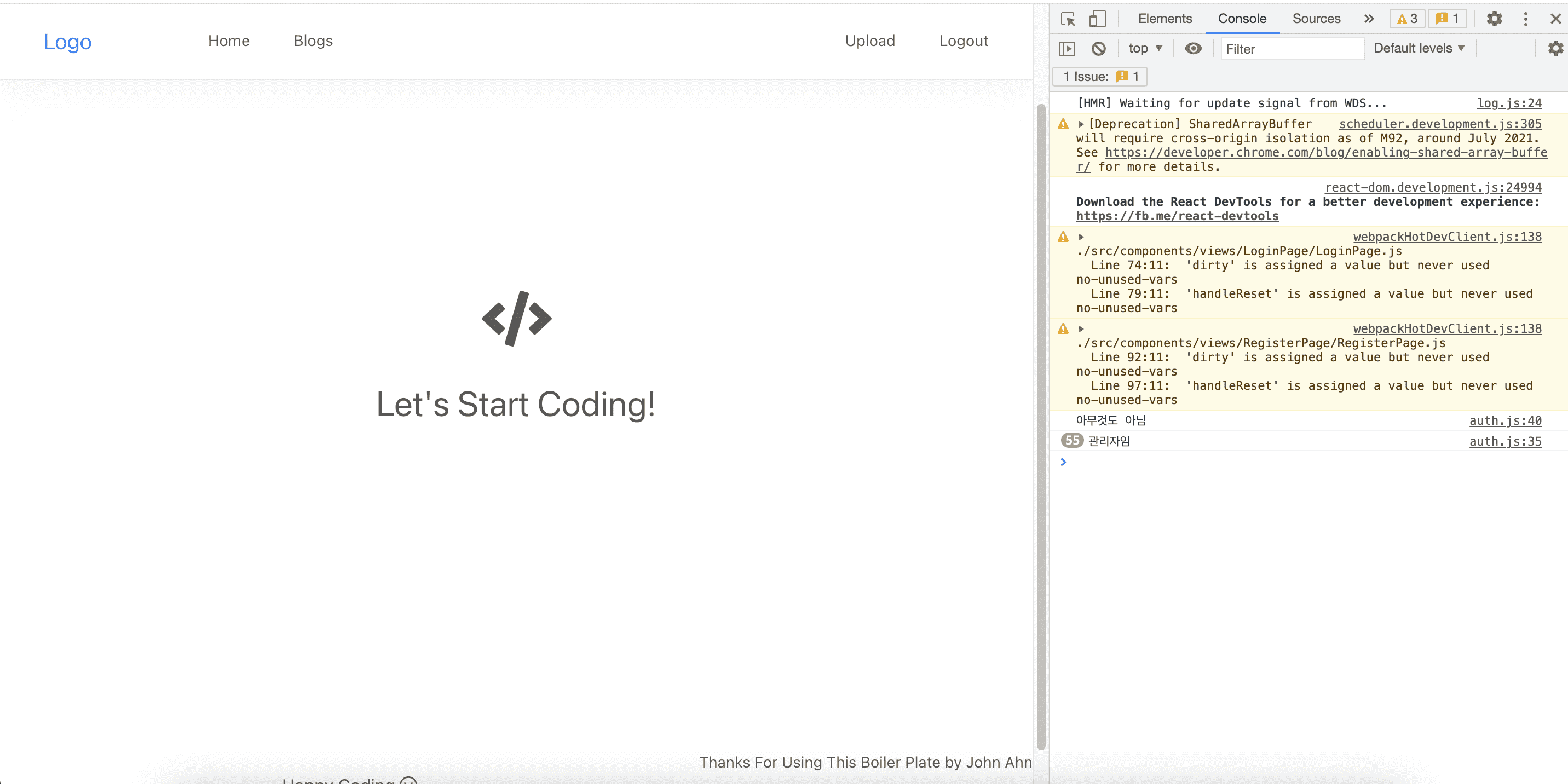 그리고 auth페이지에서 uploadpage로 갈때 user.userData.admin이 0이면 관리자가 아님, 1이면 관리자임 으로 뜨게 설