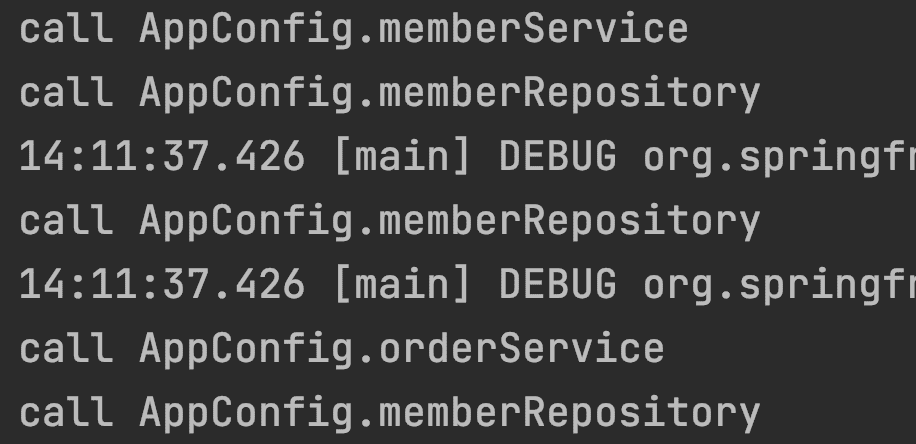 위의 테스트를 진행할때 각 서비스별로 2번씩 호출된 것을 볼수 있는데, 어떻게 같은 객체로 유지되는것 인지 궁금합니다.