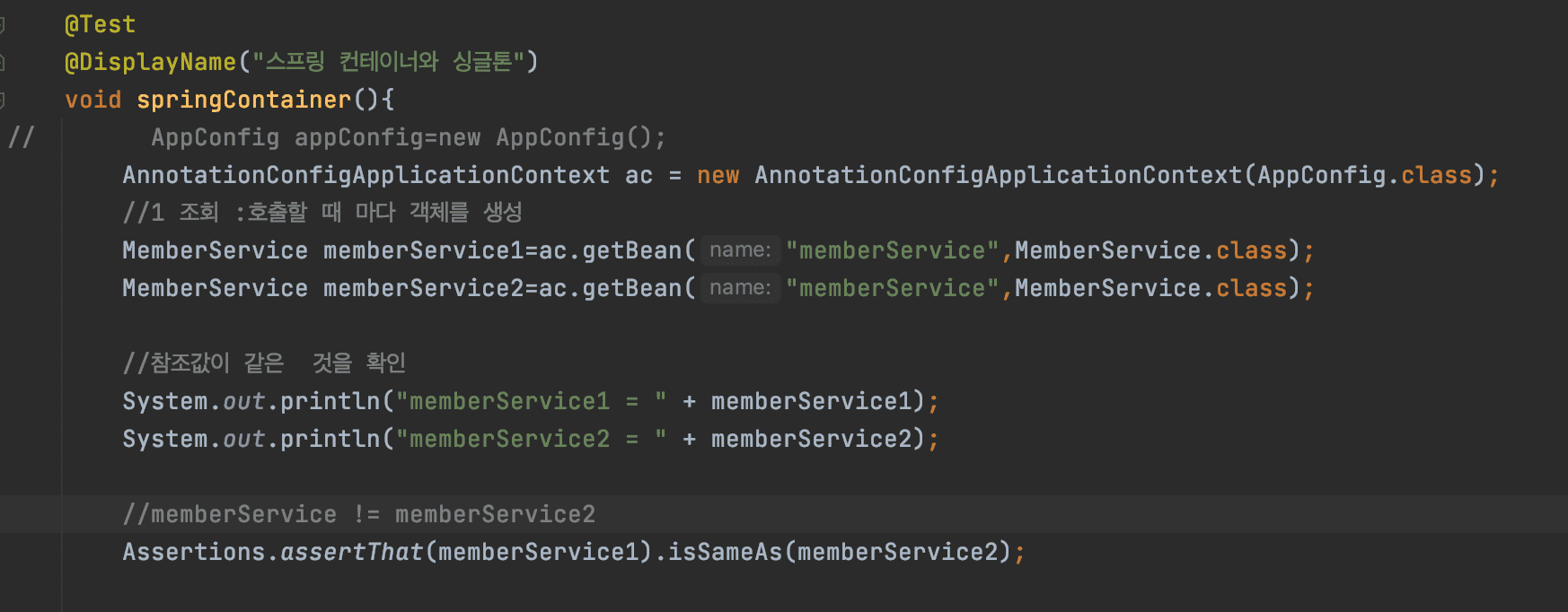 SingletonTest 의 해당부분을 테스트 하면 테스트가 통과되는 것을 볼 수 있습니다.