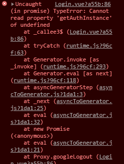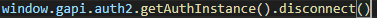 v-if문으로 로그인과 로그아웃 버튼을 나눠서 일어나는 에러였습니다 v-show로 로그인 버튼을 숨기기만 해놓으니 잘 실행이 되네요. 정확하게는 잘 모르겠지만 <div id="google-signin-btn>이 호출이 되어야 window.gapi.singin2.render()함수가 실행이 돼서 그 다음 window.gapi.auth2.getAuthInstance().disconnect()를 실행할수 있게 된거 같습니다