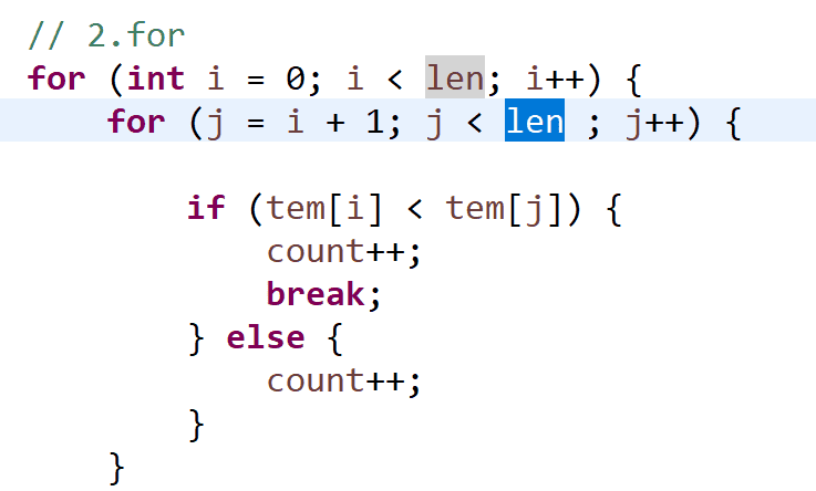 for(j=i+1;j<len;j++) {