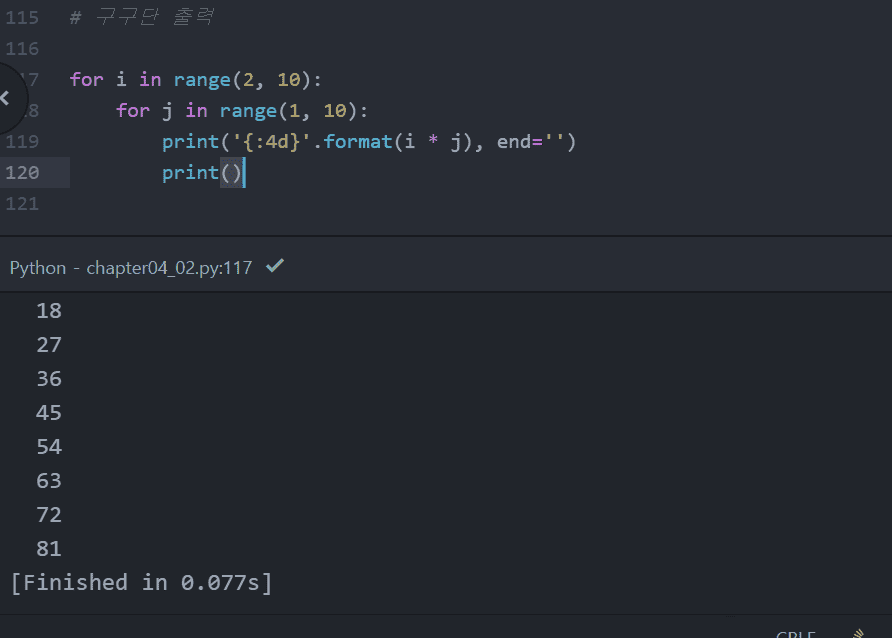 바로 아래 print()을 위에 for 블럭을 위에 for 문으로 올려주셔야 되요~