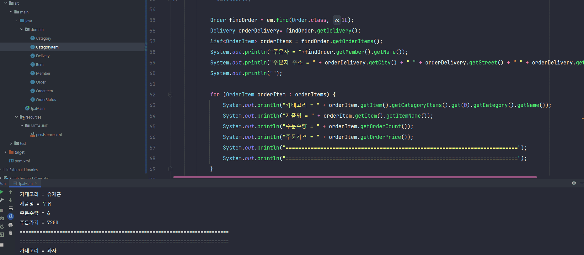 orders 와 item 관계 처럼 일대다 다대일 관계로