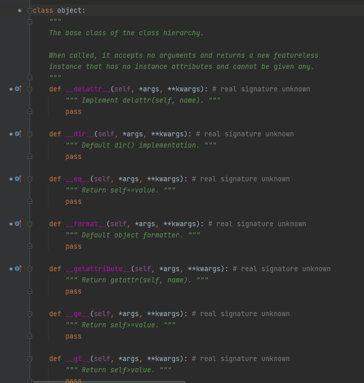 vscode로만 보다가 객체들의 매직메소드들의 실 구현이 궁금해서 pycharm으로 실행시켜서 타고 들어가 보니죄다 pass로만 되어있습니다 ㅠㅠ 이런 부분들은 볼 수 없는것인가요 ?