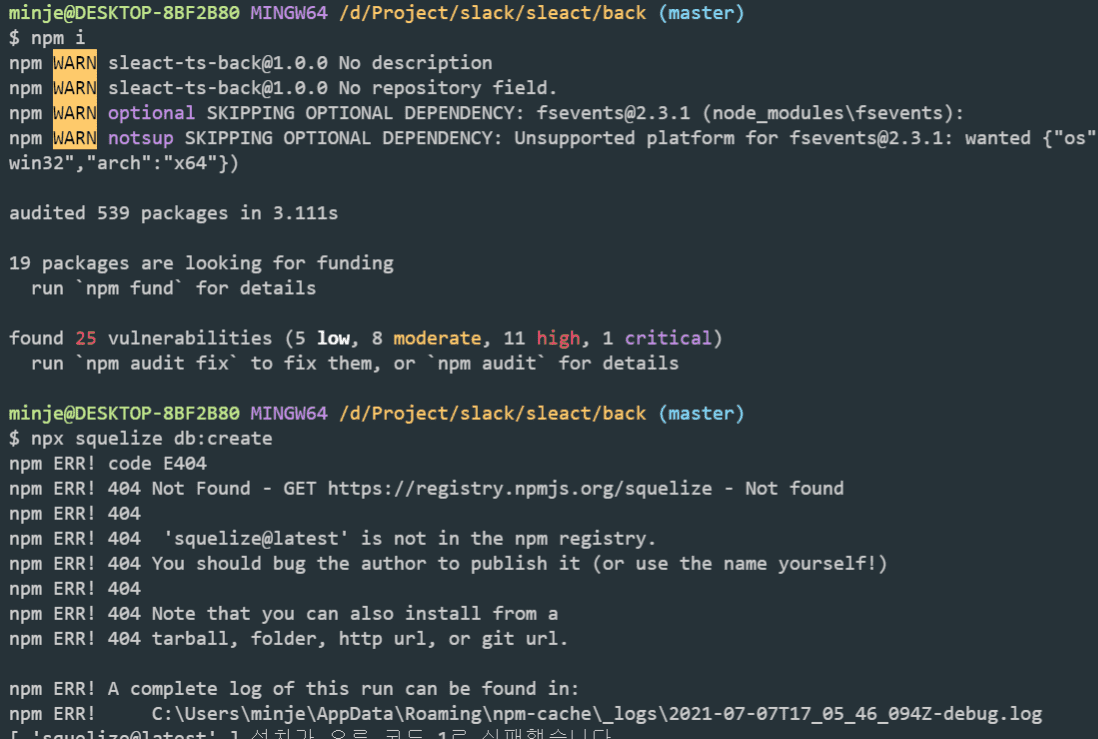 npm i 하고 back 폴더에서 하니까 에러가 납니다,,
