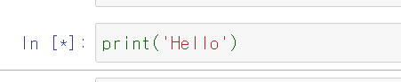 위의 사진처럼 print('Hello')를 입력하고 실행을 하면 앞에 *이 뜨면서 실행은 안돼요ㅜㅜ
