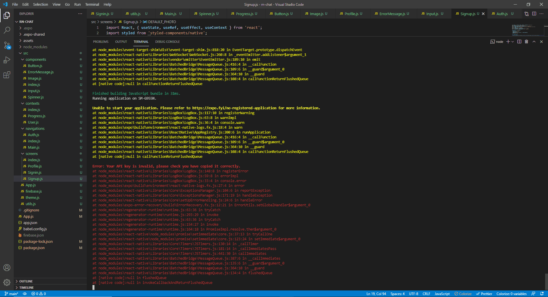두 번째 채팅 앱 Part 1. 로그인/회원가입까지 하고 실행해봤는데