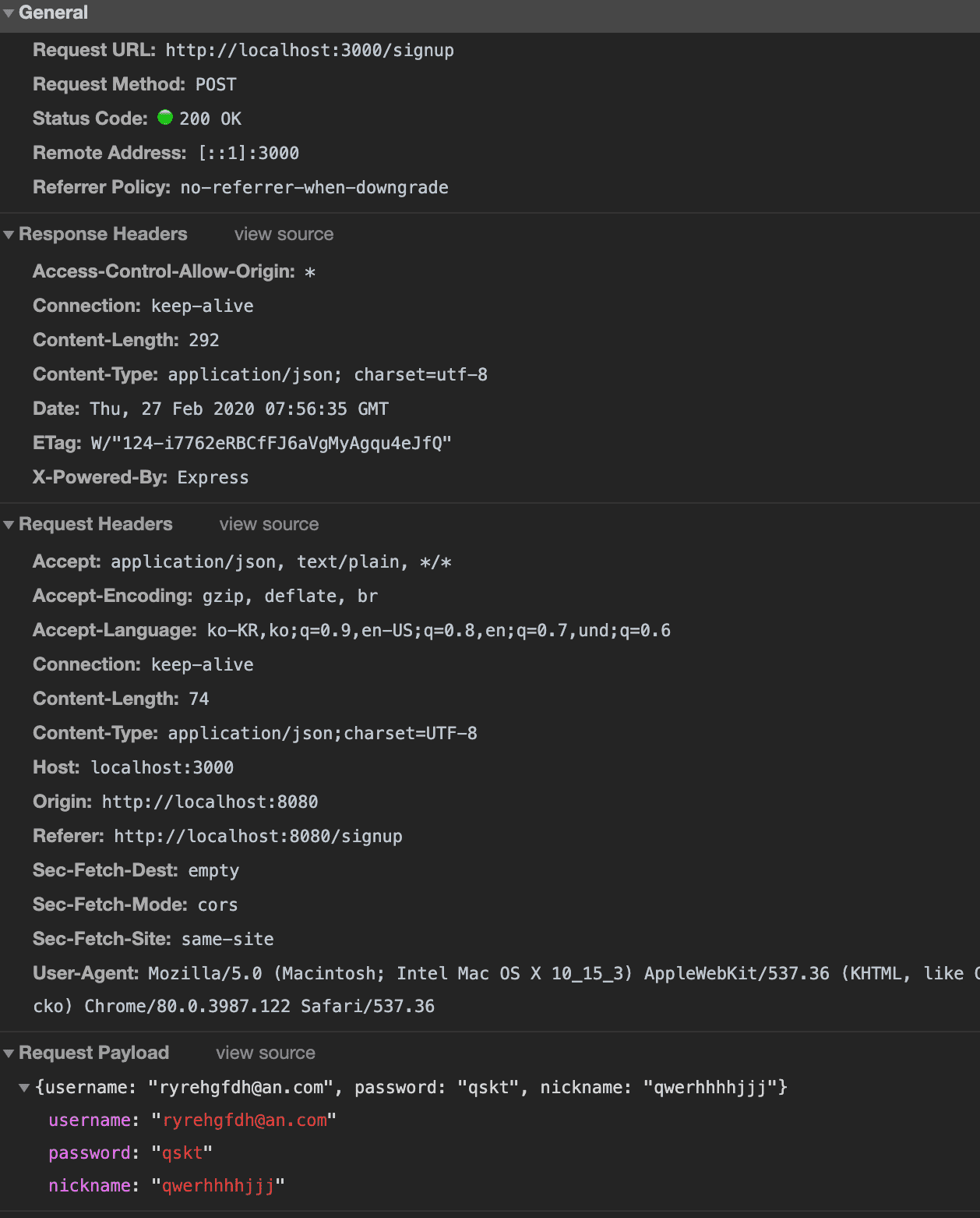 네트워크에서는 200 이떠서 통신에 성공했다고 뜨는데