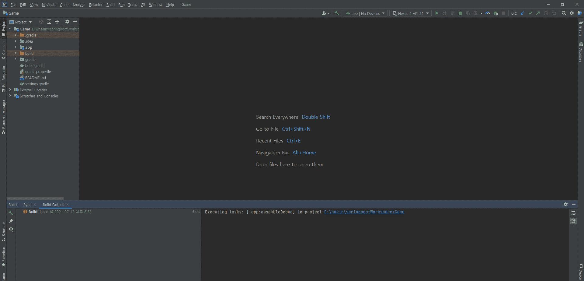 게임 백과사전 앱 레이아웃 강의 깃허브 에러