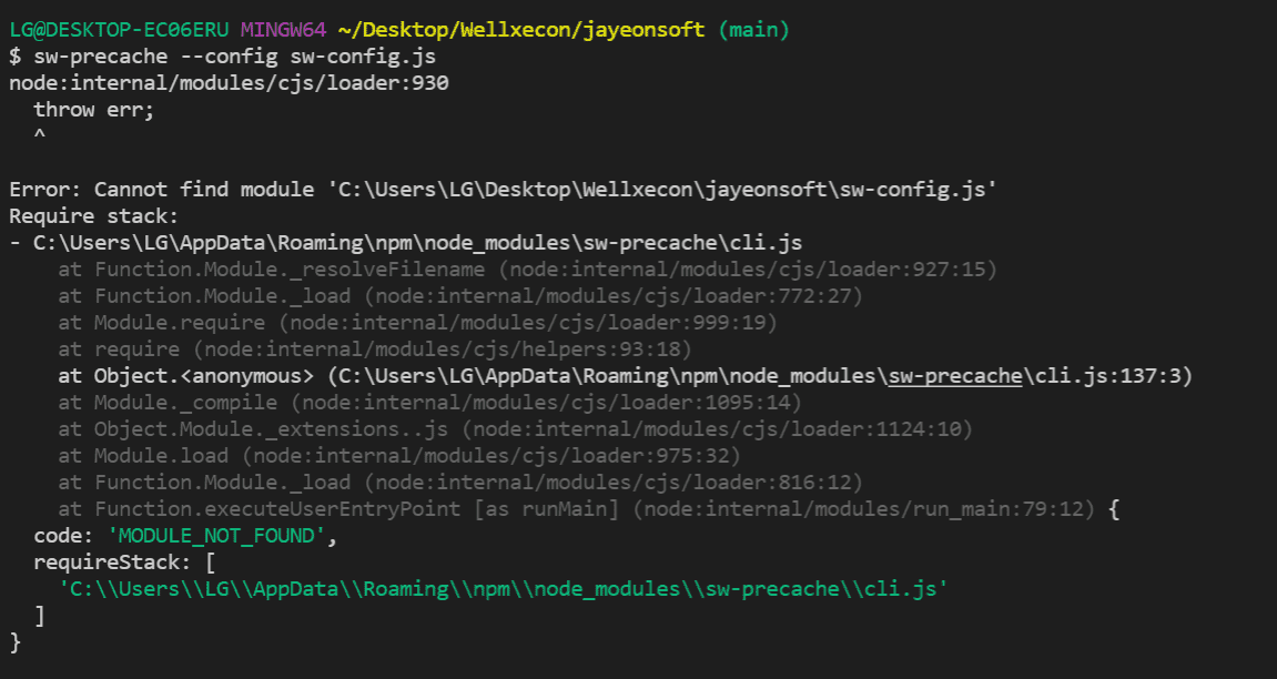 안녕하세요 설아님, swprecache 설정 파일 안에 설정하신 내용이 잘못된 것 같아요. 그리고 swprecache 보다는 이제 아래 라이브러리로 진행해 보시는 걸 추천드립니다 :)