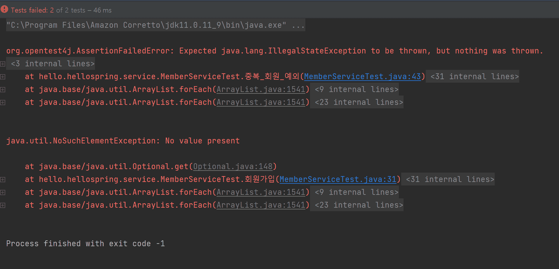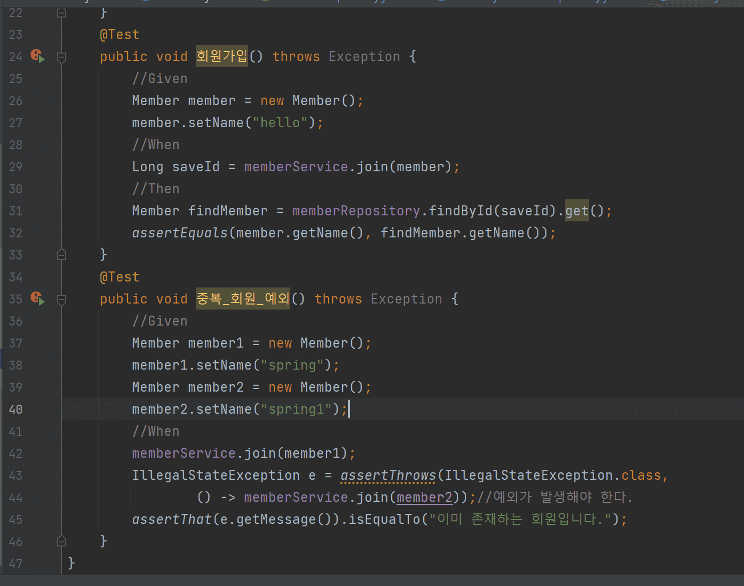 https://github.com/choiminjong/hello-spring/blob/master/src/test/java/hello/hellospring/service/MemberServiceTest.java