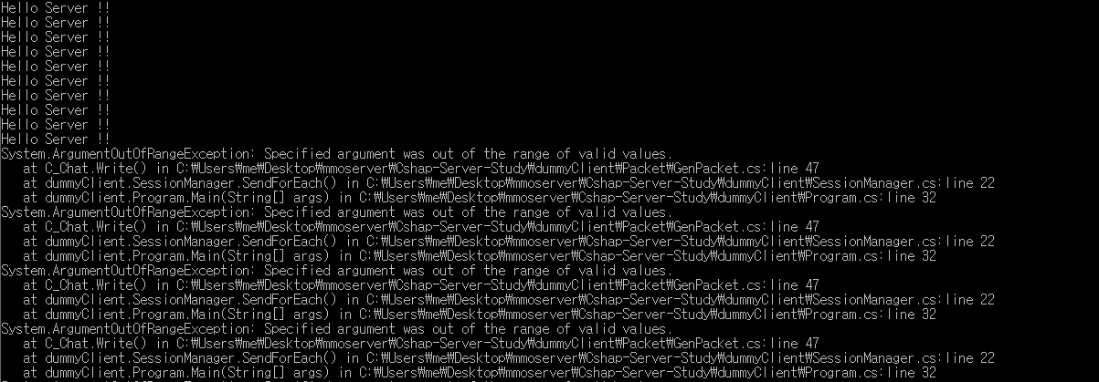 System.ArgumentOutOfRangeException은 배열 범위 밖을 참조할 때 일어납니다.