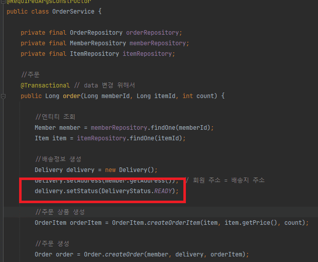 Long orderId = orderService.order(member.getId(), item.getId(), orderCount);