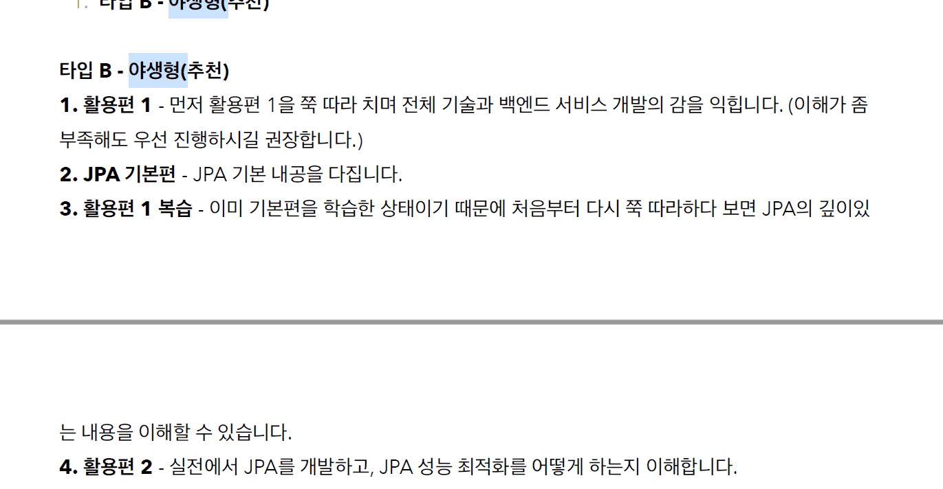 활용1 -> JPA 기본편 -> 활용1 복습 -> 활용2 의 순서를 야생형 스타일의 학습 방식으로 정의하시는데,