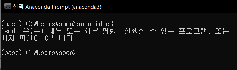 아나콘다에서 idle 실행하면 이런메세지가 떠서 idle 직접 켜서했습니다 ㅠ pip3로도 설치했는데 안되네요..