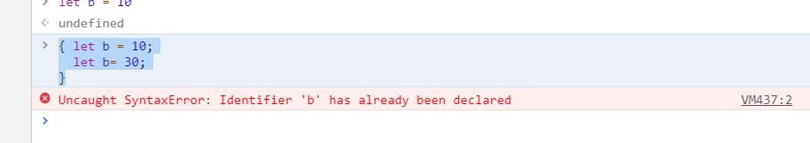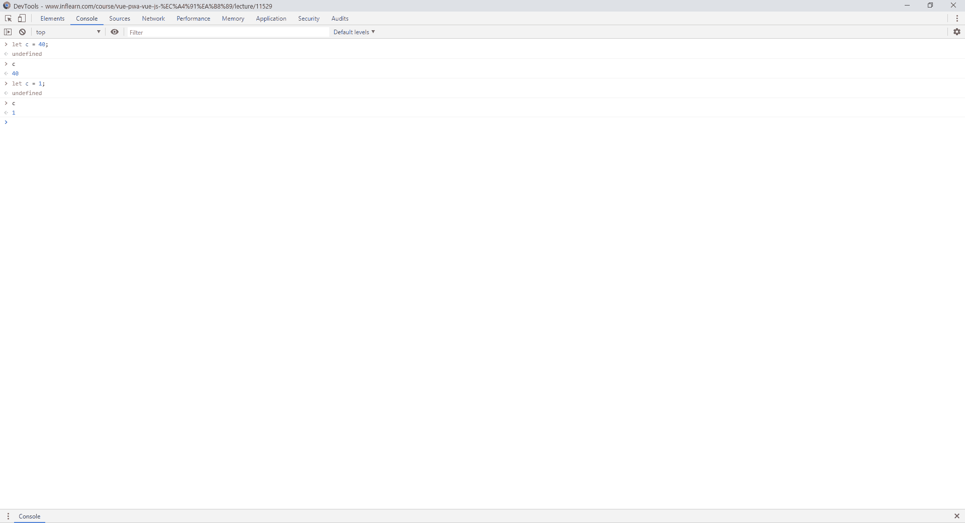 크롬 콘솔에서 따라 치면서 확인하고있는중에 let c = 40;으로 선언한뒤 바로 let c =1;로 재선언했을때 에러없이 var 처럼 동작하는게 강의와 달라서 문의드립니다.