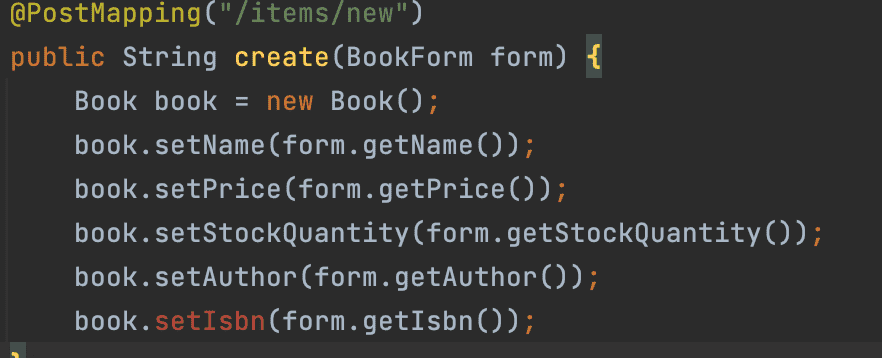 보시는 바와 같이 book.setIsbn에서 오류가 떠서 BookForm클래스로 들어가서 멤버변수를 확인했습니다.