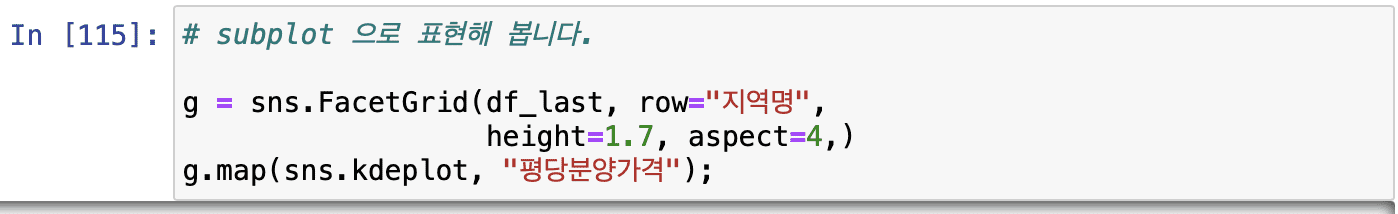 또, 질문주신 ridgeplot도 displot으로 다음과 같이 그려볼 수 있습니다.