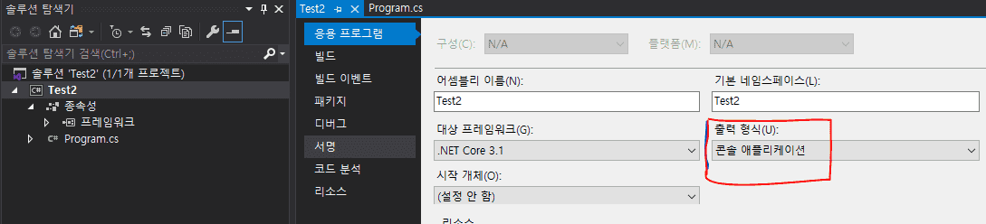 혹시 아예 실행조차 안 된면, 출력 형식이 [콘솔 애플리케이션]으로 되어 있는지 확인 부탁드립니다.