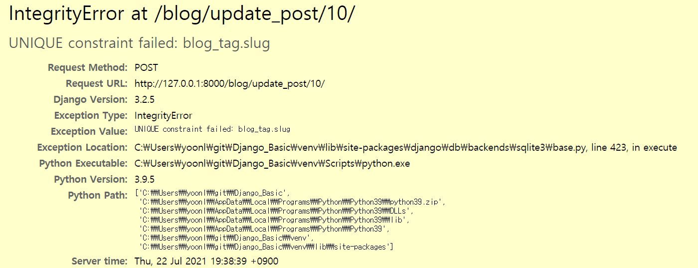 Edit Post를 누르면 Tags에 원래 있던 태그가 나오고 다른 태그를 작성해서 submit하면 Error가 발생합니다.