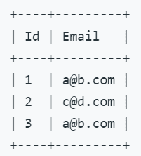 이 쿼리는 Email 값이 같은 것끼리 그룹을 지은 후, 각 그룹 내에서 Id 개수, row 개수, Email 개수를 세서 Email 값과 함께 출력해 달라는 뜻이므로, 다음과 같은 결과가 나옵니다.