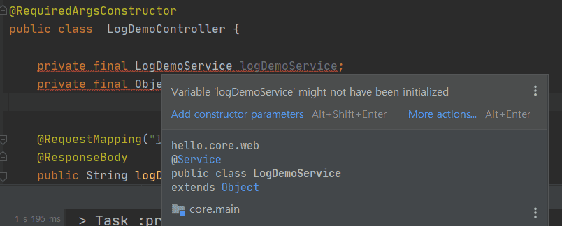 처음에는 lombok이 제대로 되었습니다.