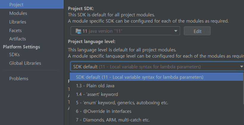구글링을 해도 그냥 프로젝트 jdk만 바꾸는 것 밖에 나오지 않아 혹시 방법을 알고 계시면 알려주시면 감사합니다