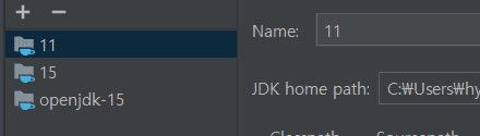 혹시 cmd 창에 java -version을 입력했을 경우 15보다는 11로 하고 싶은데,,