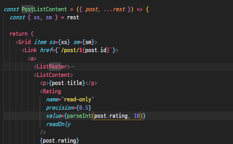 <Rating value={singlePost.rating} precision={0.1} readOnly />