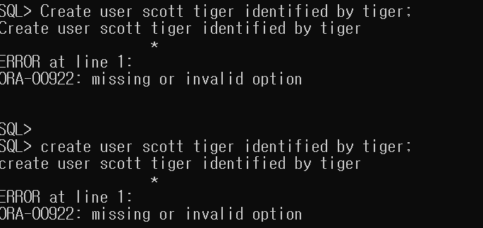 Create user scott tiger identified by tiger; 라고 입력하신부분을