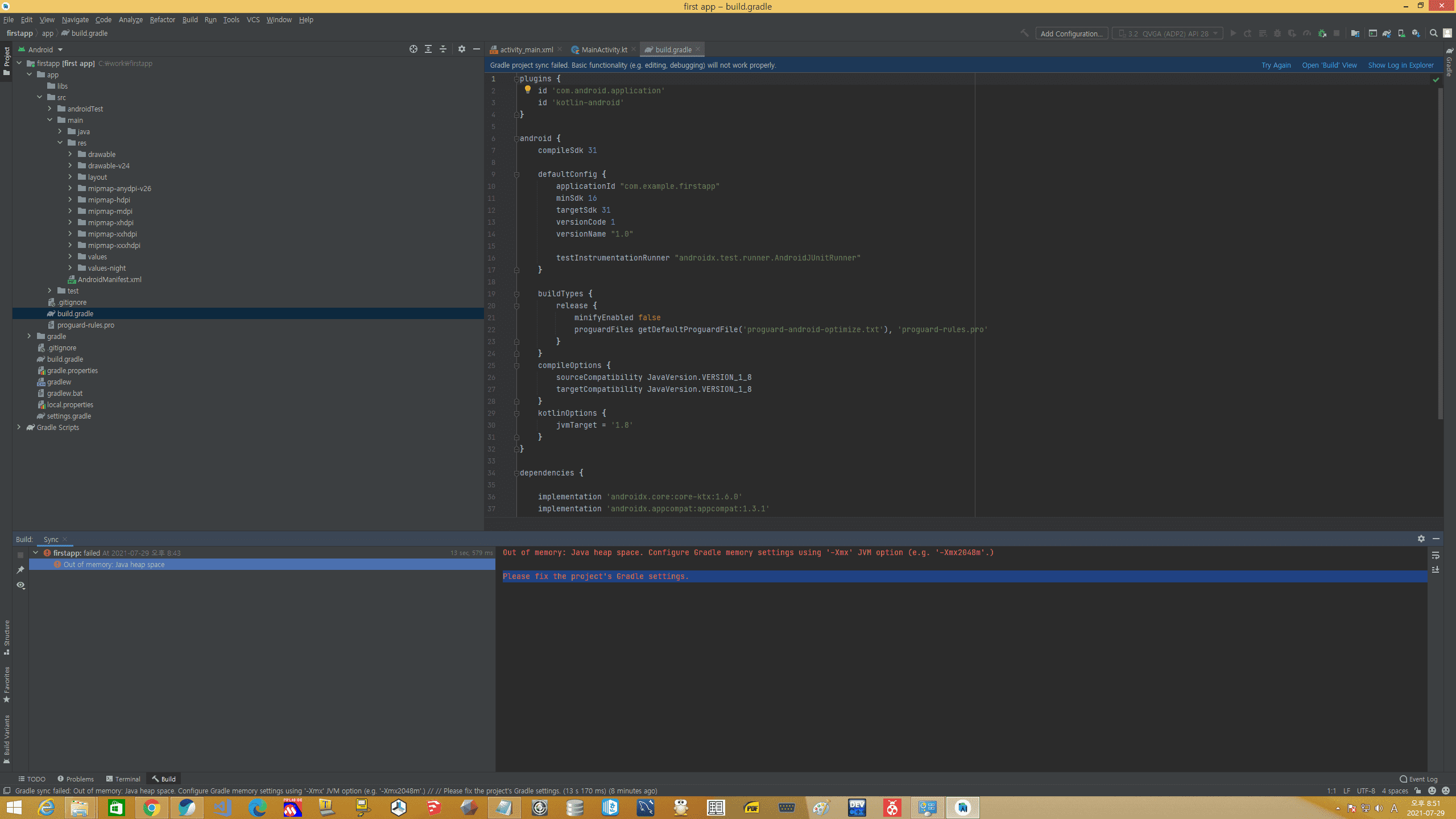 안드로이드 스튜디오 실행 관련 문의드립니다.