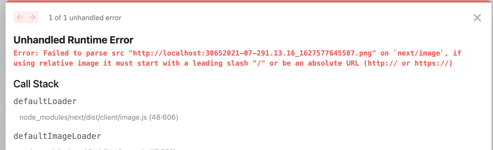 Error: Failed to parse src "http://localhost:30652021-07-291.13.16_1627577645507.png" on `next/image`, if using relative image it must start with a leading slash "/" or be an absolute URL (http:// or https://)
