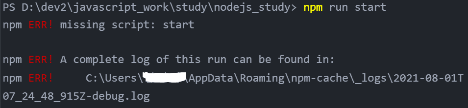 npm run start 실행시 에러가 뜹니다