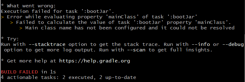 execution failed for task ' bootjar' - Google 검색