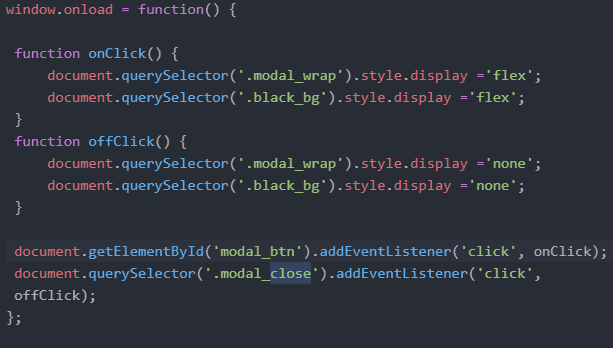 2. 하나는 회원가입 버튼을 눌렀을때(Modal_btn) 로그인 모달창이 나타나게 하는 자바스크립트 코드입니ㅏㄷ.