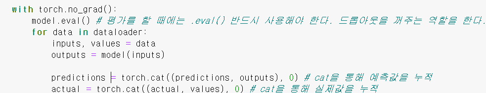 아 윗부분이 잘렸네요. 모델 평가부분입니다. dataloader가 어떤식으로 받아오는건지 잘 모르겠습니당.