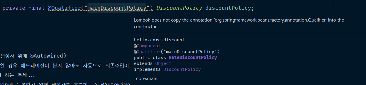 롬복을 쓸때는 @Qualifier 애노테이션을 쓸 수 없는건지 아니면 다른 방법이 있는건지 궁금합니다