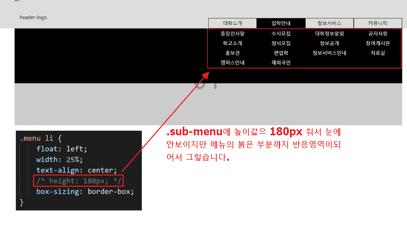 두번째로 네비게이션의 .li > a 부분에 마우스가 올라가면 서브메뉴가 나와야 하는데 서브메뉴가 내려오는 부분에만 마우스가 올라가도 바로 내려와버립니다. 뭐가 문제인지 모르겠어요... 사진 첨부합니다..