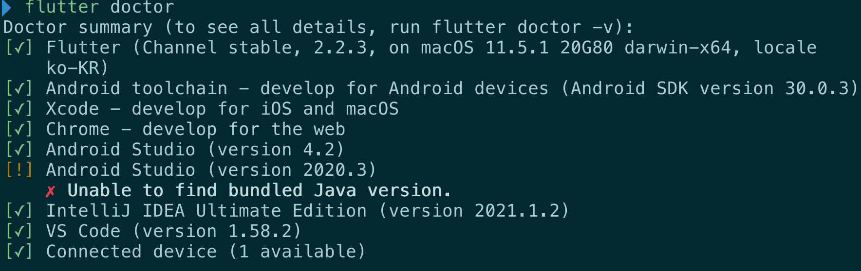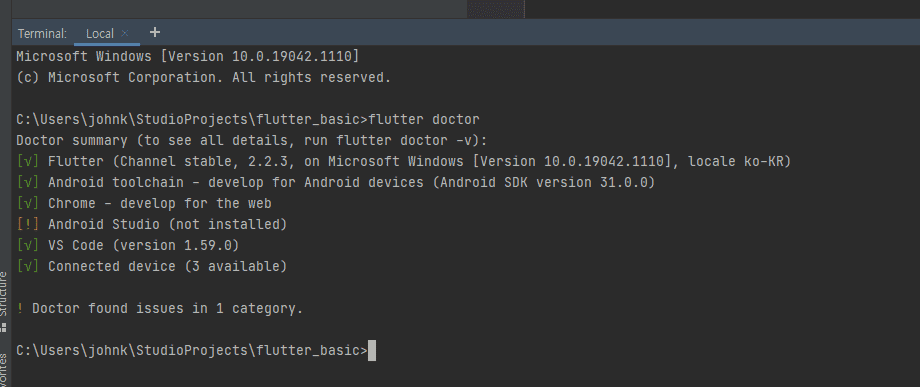 버그 일 수 있으니 안드로이드 스튜디오 실행하여 플러터 빌드가 잘 되면 무시하고 진행하셔도 될 것 같습니다.