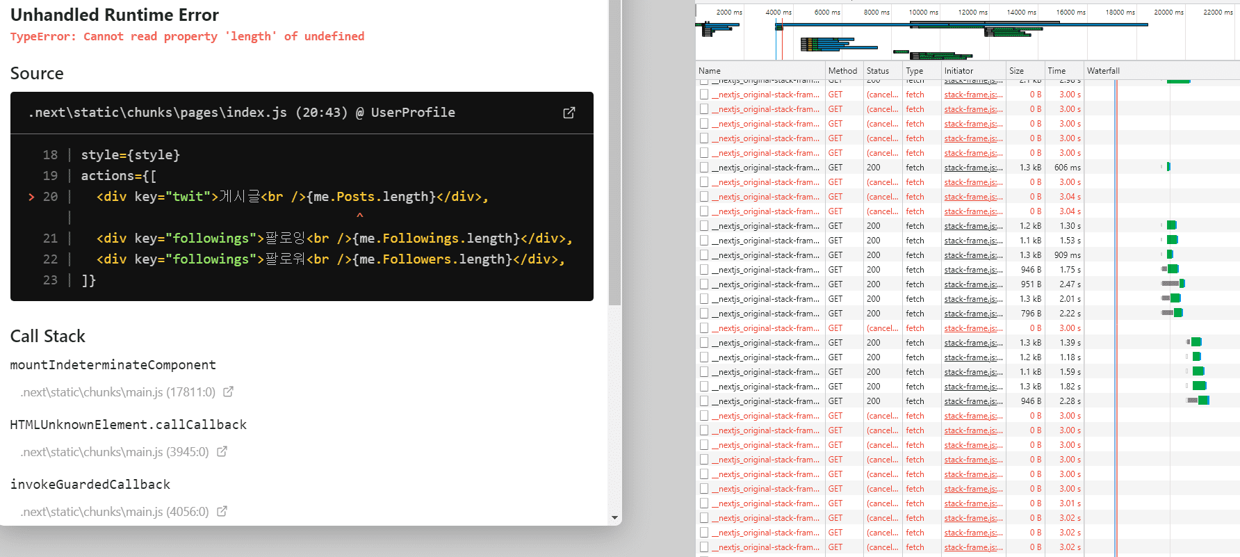 로그인을 시도할 경우, length나 find가 undefined 라고 나옵니다. 더미데이터를 사용하다가  reducers/user.js의 LOG_IN_SUCCESS를 더미데이터를 사용하지 않고action.data를 받아서 사용한 이후로 해당 오류가 계속해서 발생합니다. me.Posts나 me.Followings 등이 null이기 때문에 나오는 오류인 것 같은데 혹시 해결방법이 있을까요?