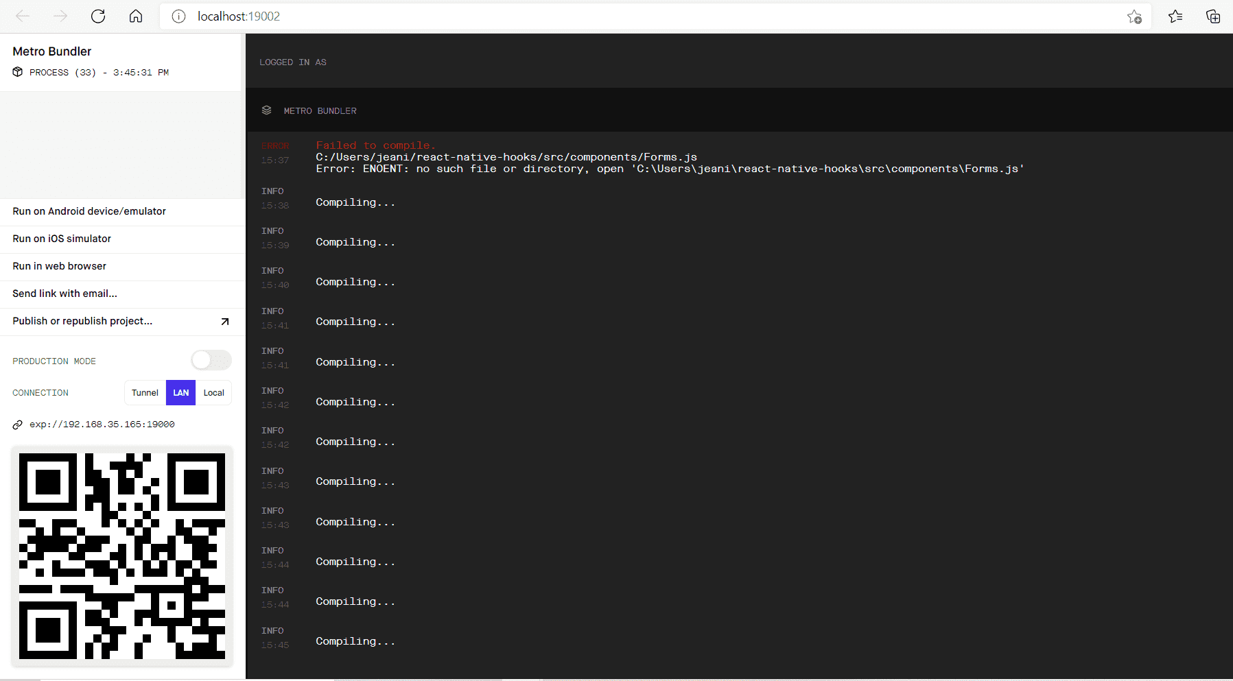 선생님 useEffect 활용하기에서 값을 변경할 때마다 바뀌는게 창에 떠야하는데 사진 처럼 그냥 compiling...이라고만 뜨는데 왜 이런걸까요?ㅜㅜ