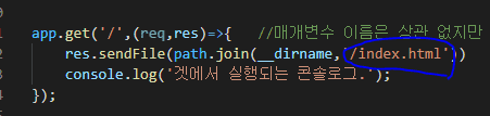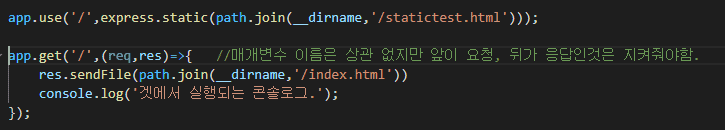 get '/'에서도 다른 html 파일을 불러오게 해봤는데 use 가 위에 있음에도 get에서 불러오는 html을 가져오는것을 확인했습니다.